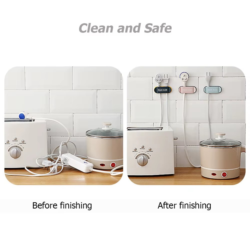 4pcs/pack Wall-Mounted Power Cable Clamps Fixer Strip Punch-Free Cable Hangers Cable Organizers For Wall And Table Mounting